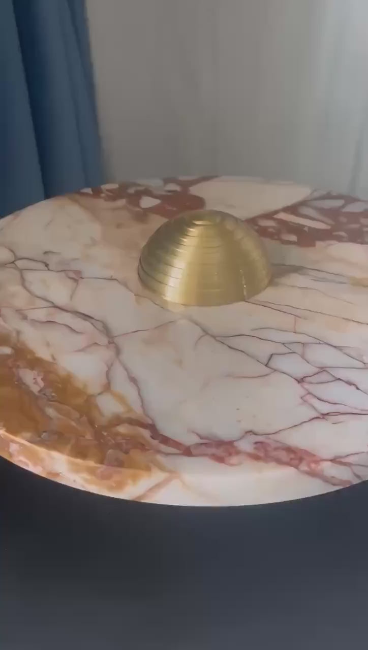 When illuminated, the marble reveals a mesmerizing interplay of color, depth, and translucence — creating an ambient glow that feels both architectural and poetic. The lamp’s minimalist geometric design and the dramatic texture of Calacatta Viola bring together modern precision and organic artistry.
